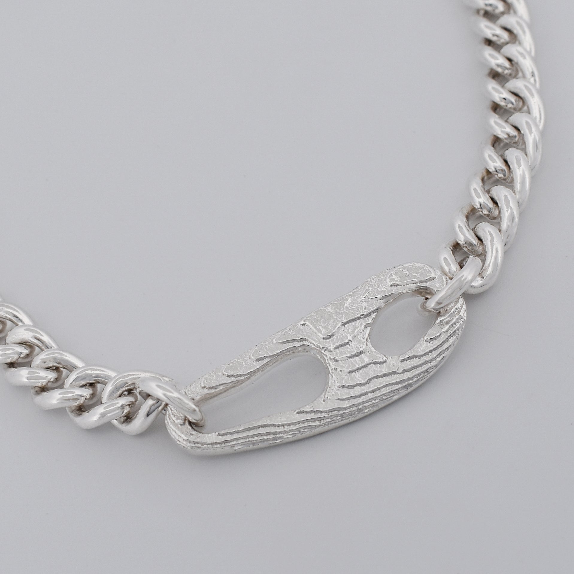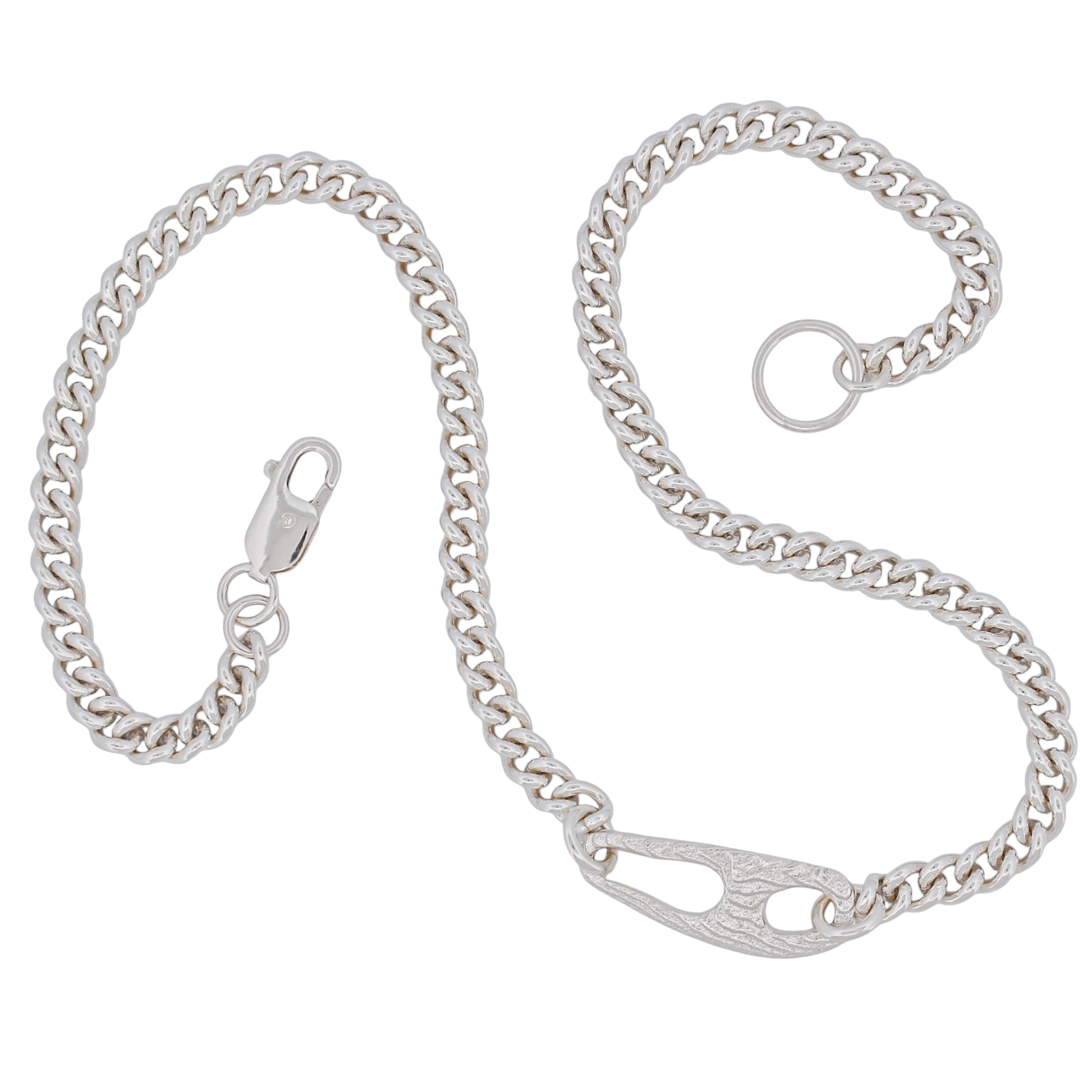 The tab sits on a curb chain with either a length of 42cm or 45cm.