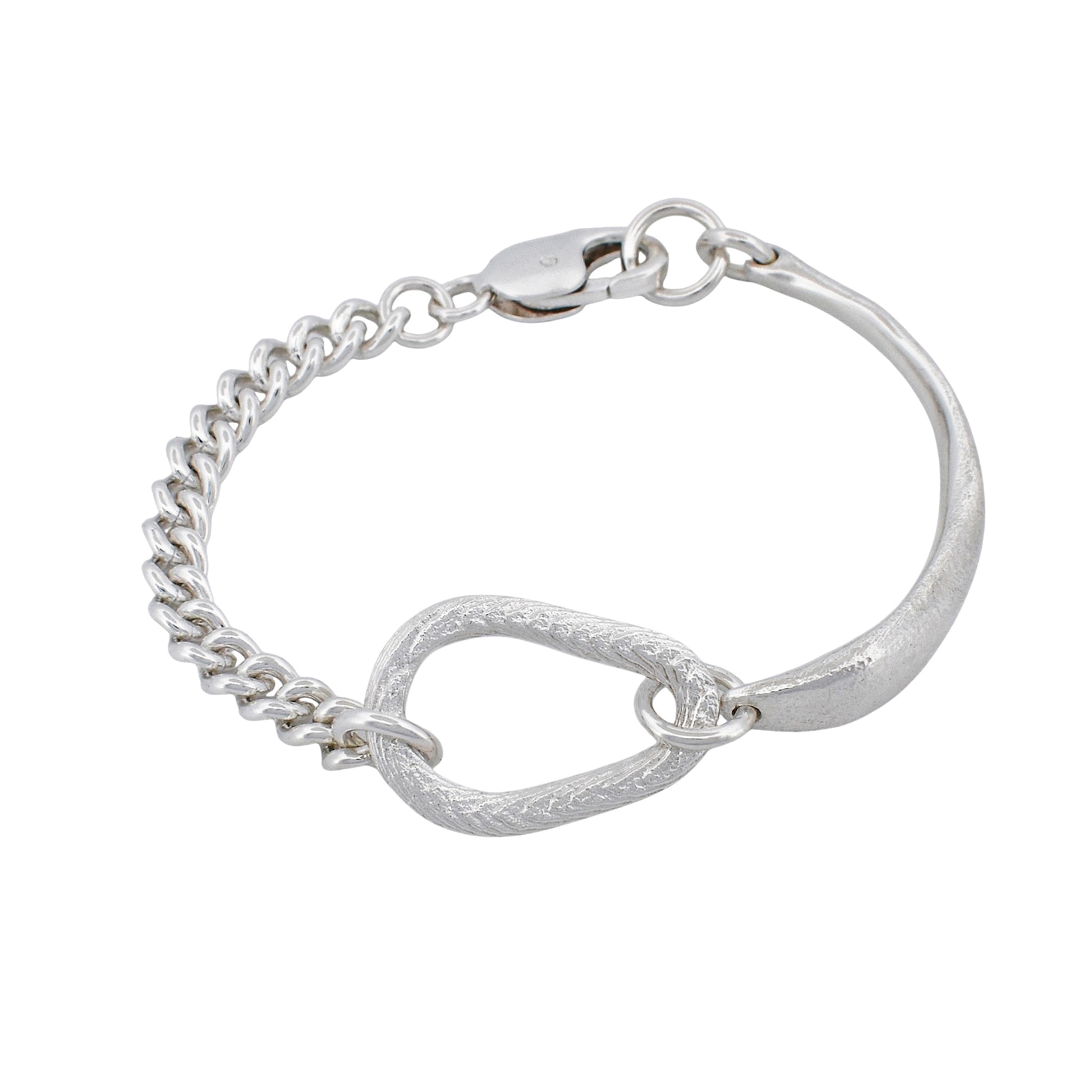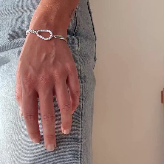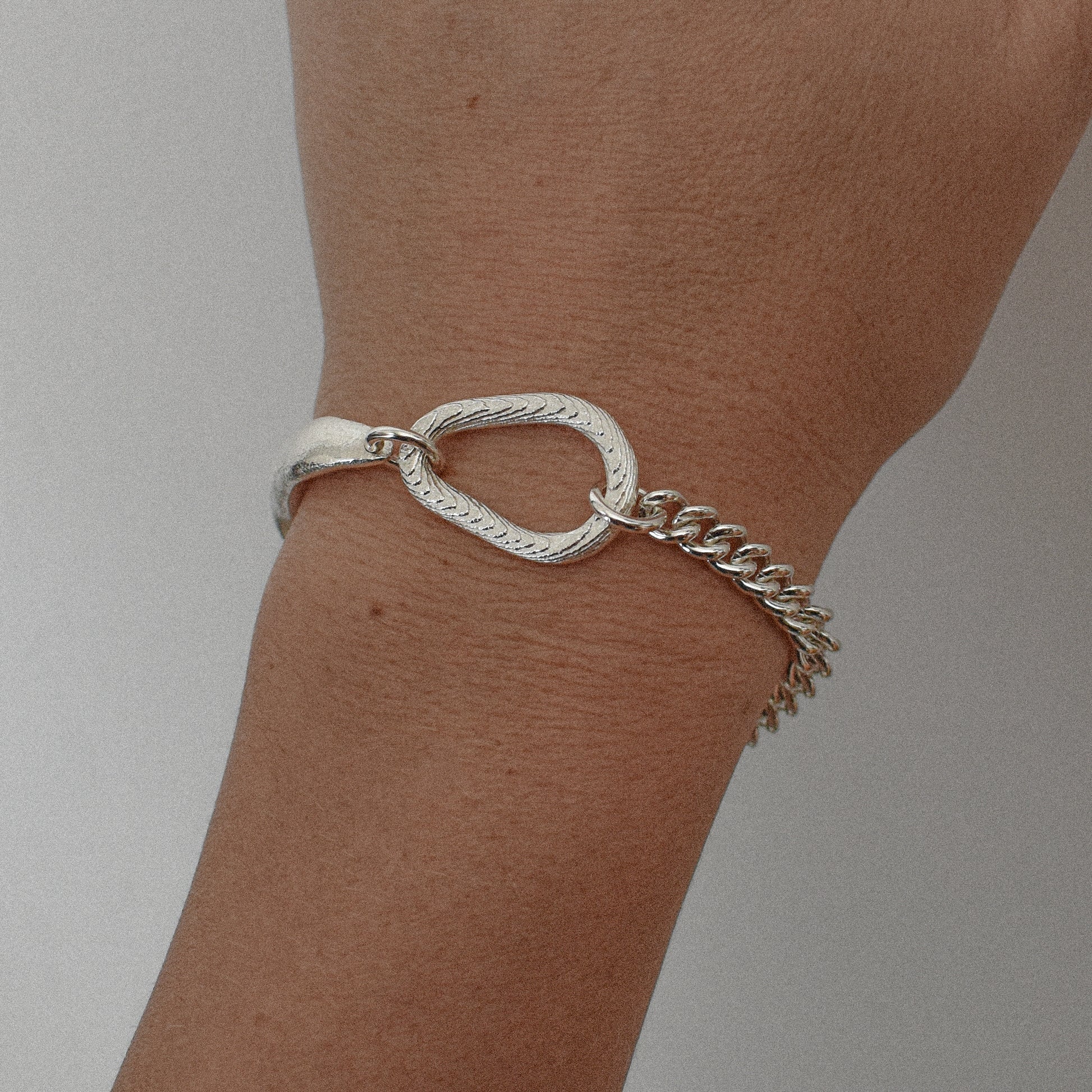 Ethically and consciously crafted from 100% recycled solid sterling silver. This half cuff, half curb chain bracelet combines structure and fluidity in one piece.
