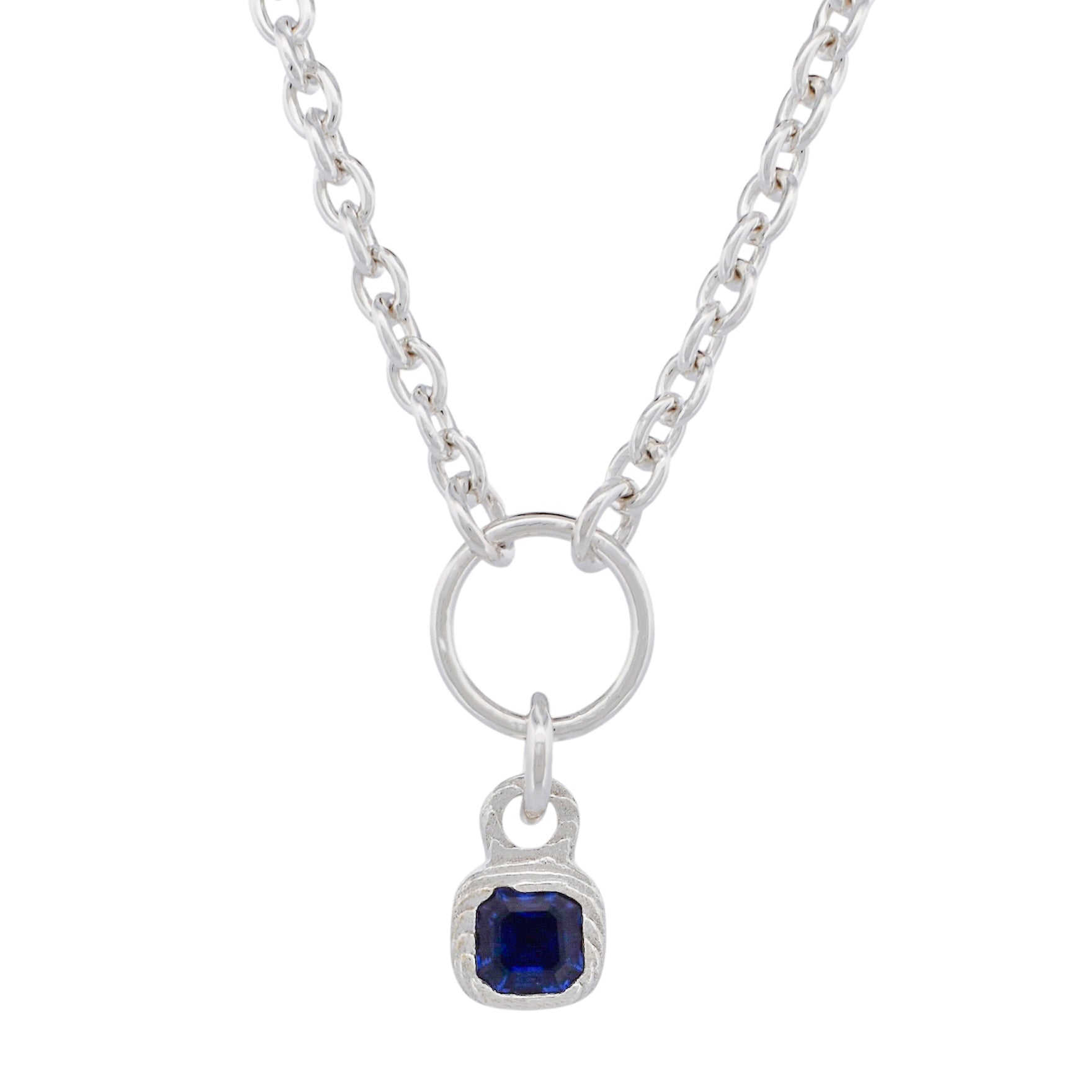 Ethically and consciously crafted from 100% recycled solid sterling silver. This necklace features a lab grown blue sapphire gemstone.